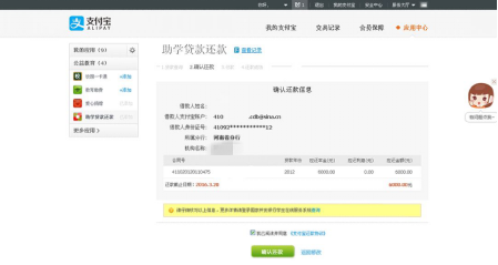 学生完成网上申请后,于当月20日前登陆支付宝网站(http://www.alipay.com)进行还款。